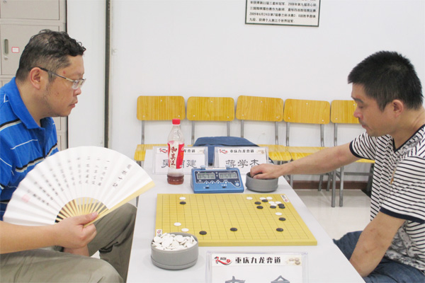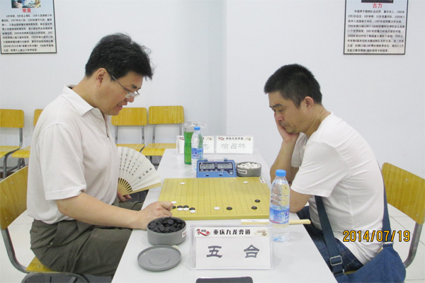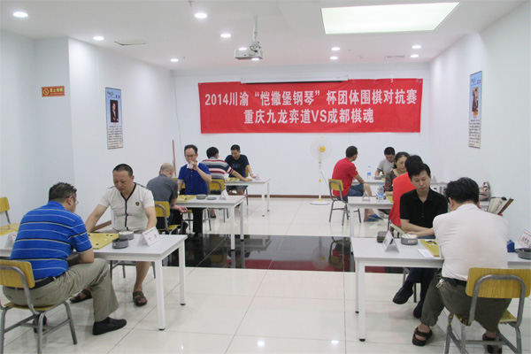 2014川渝业余4段以上围棋团体对抗赛日前在九龙弈道落幕、经过二天七轮49盘的比拼,九龙弈道以26:23的微弱优势取胜、这是一场实力相当的比赛,特别是第一天棋魂队时11:17落后、第二天棋魂队队员早早地来到赛场,个个摩拳擦掌,跃跃欲试、大有强势反弹的架势、果然不出所料、棋魂队就给九龙弈道队来了一个下马威、以一个6:1的悬殊比分赢下了第五轮,使双方的差距缩小到只有一盘的状况,面对棋魂的大举进攻,九龙弈道队在主将的率领下,沉着应战,紧紧咬着比分、最后二轮以两个4:3相同比分、把胜利牢牢握在自己的手里、整个比赛起伏跌宕充满无数的变数、胜负都在毫厘之间,令现场观战的围棋爱好者大呼过瘾。