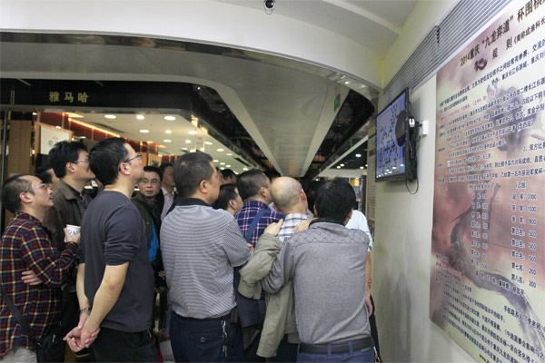 2014重庆“九龙弈道”杯围棋邀请赛10月19日下午在位于重庆市九龙坡区杨家坪步行街立丹百货二楼长江乐器城内的重庆九龙弈道围棋培训基地落幕,来自成渝两地的88位棋友分为甲乙两组进行了7轮争夺,最后,来自成都的程晓灵和九龙弈道的万玉发分别以6胜1负和7连胜的战绩获得甲乙两组的冠军,其余棋友也各自排定座次。