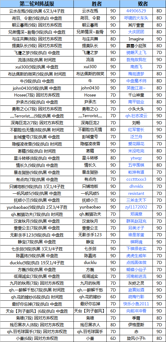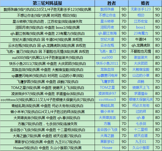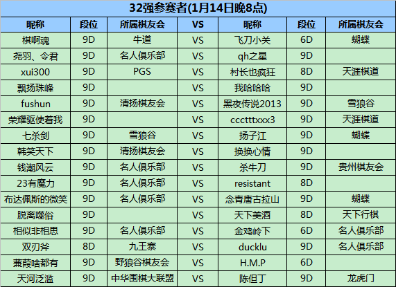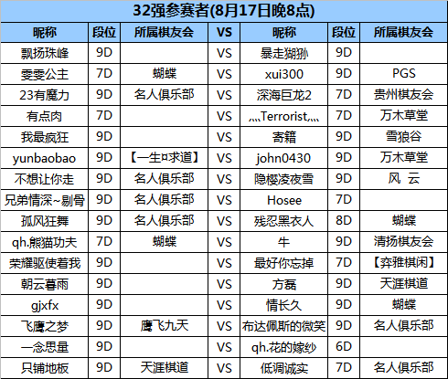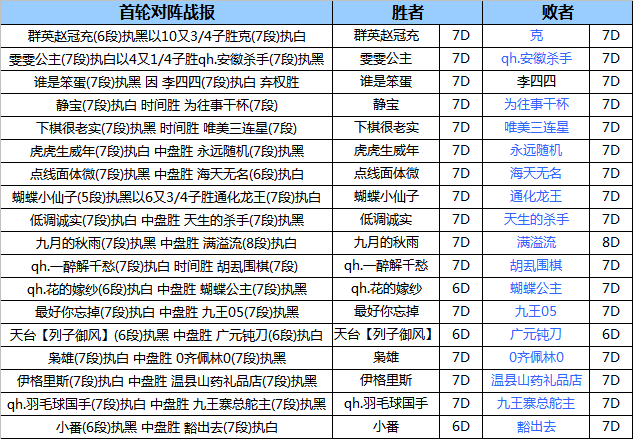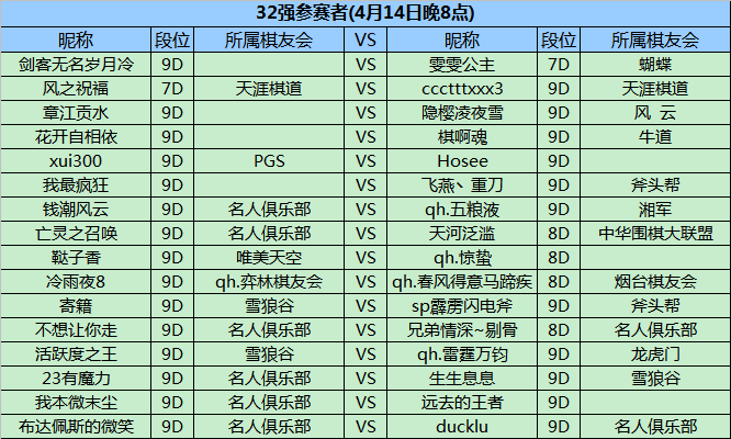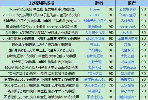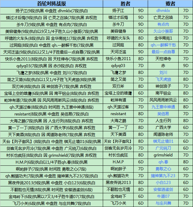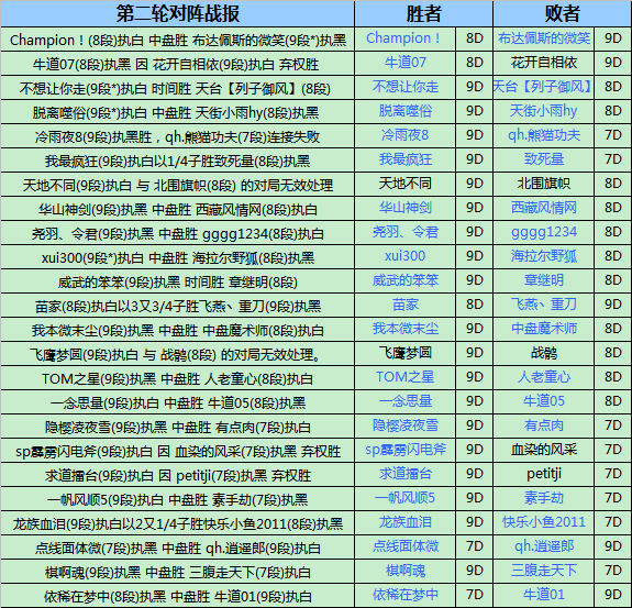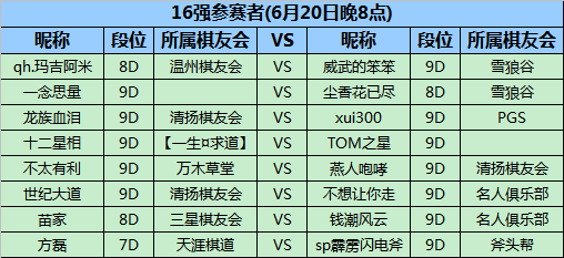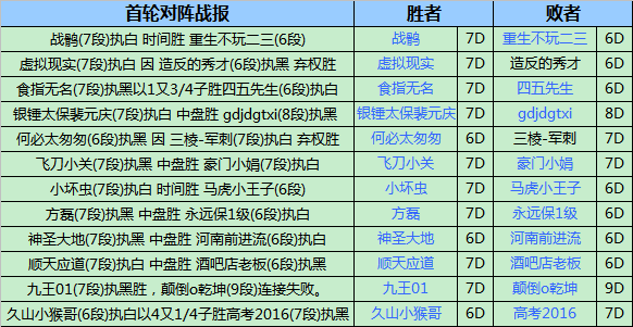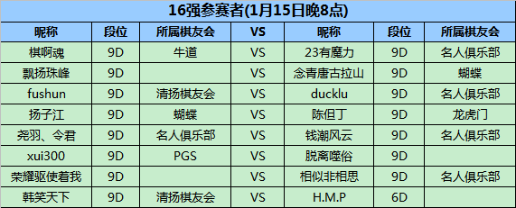 注意事项:每盘棋均为系统自动猜先。对局中掉线以后5分钟以内登陆上棋魂则对局继续,超过5分钟则判负。每局掉线5次则判负。胜负确定后原则上不允许续赛和重赛。(另:报名选手中等级分排名前8位的选手直接晋级32强赛。)