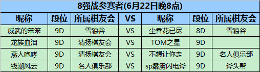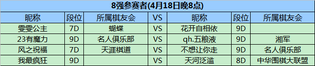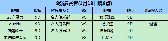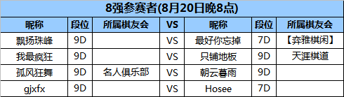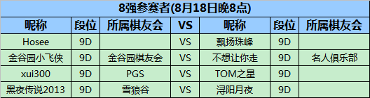 第六轮 8月18日 (周4)20:00 (8强赛)