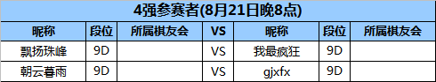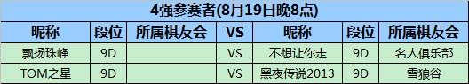 第七轮 8月19日 (周5)20:00 (4强赛)