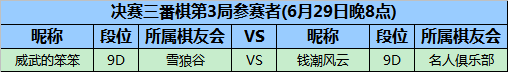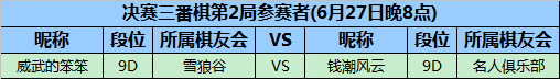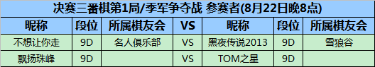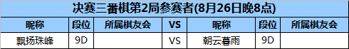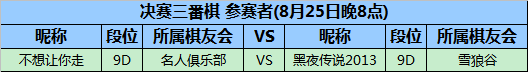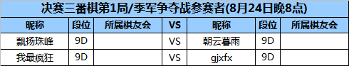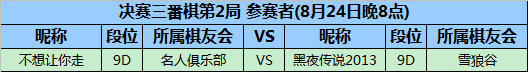 第九轮 8月24日 (周3)20:00 (决赛三番棋次轮)