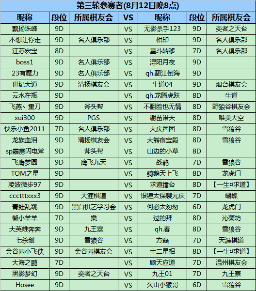 第三轮 8月12日 (周5)20:00 (第三轮)
