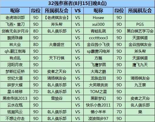 第四轮 8月15日 (周1)20:00 (32强赛)