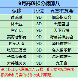 经过7天的报名7号晚10月月赛报名已经结束。共有99位玩家成功报名,9月棋魂高段对局积分榜前8名的棋手将直接进入32强(积分榜前8位里有未报名参加月赛的将依次向后顺延),有86人将参加10日晚上的第1轮,5人参加12日晚上的第2轮,32强战在10月13日晚8点拉开序幕。又是一番黑白大战值得期待,以下是本月月赛的报名情况和赛程安排。