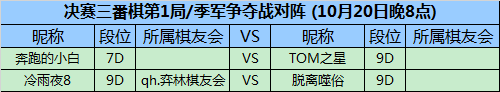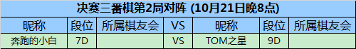 第八轮 10月21日 (周5)20:00 (决赛三番棋次轮)