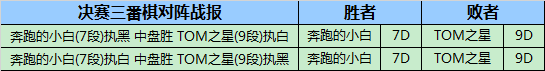 第七轮 10月20日 (周4)20:00 (决赛三番棋首轮及季军争夺)