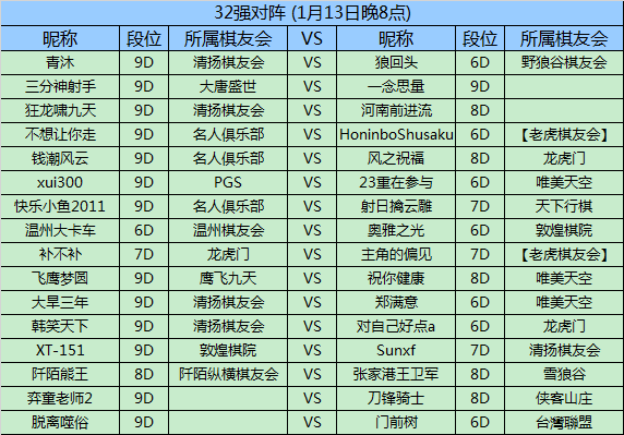 第三轮 1月13日 (周5)20:00 (32强赛)