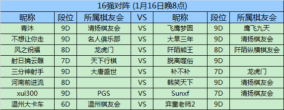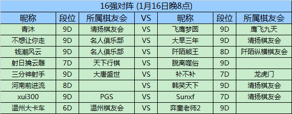 第四轮 1月16日 (周1)20:00 (16强赛)