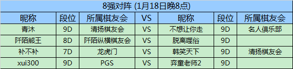 第五轮 1月18日 (周3)20:00 (8强赛)
