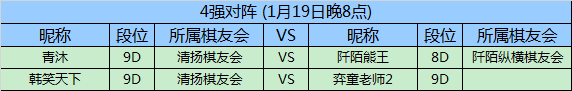 第六轮 1月19日 (周4)20:00 (4强赛)