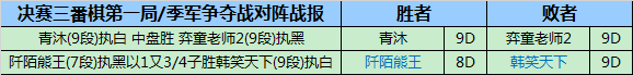 第九轮 1月25日 (周3)20:00 (决赛三番棋末轮)