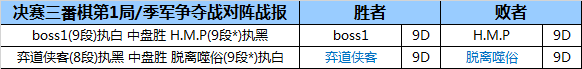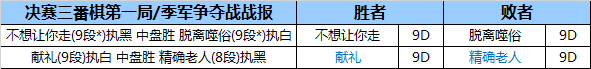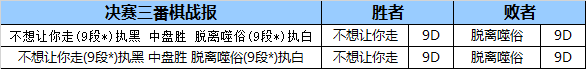 第十轮 9月27日 (周3)20:00 (决赛三番棋末轮)