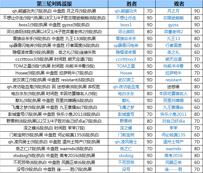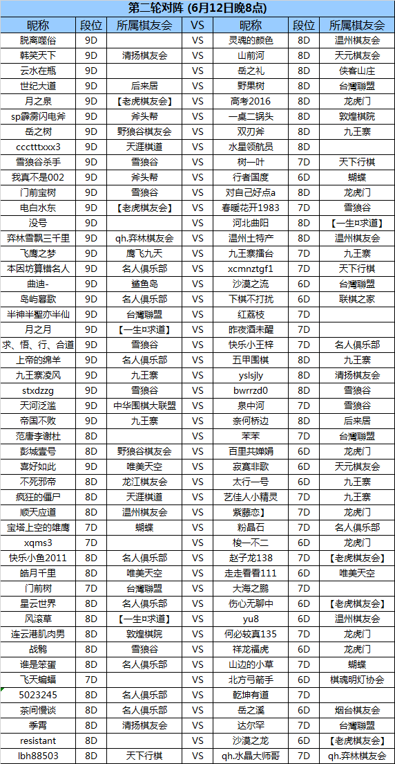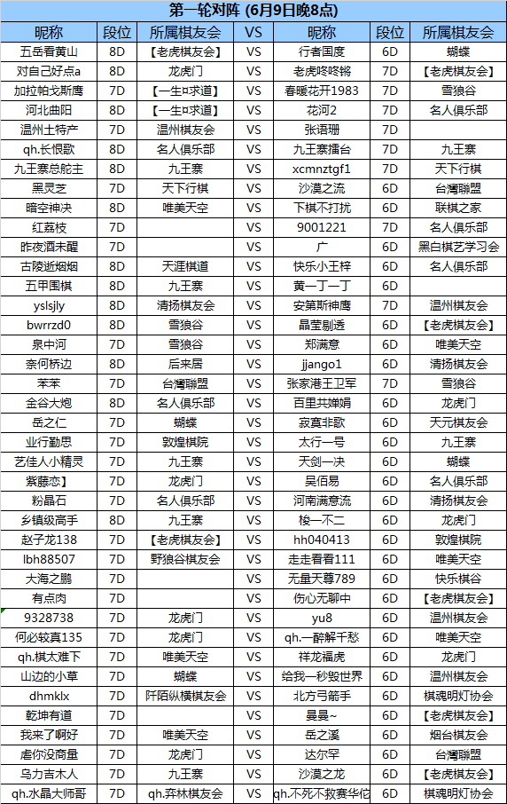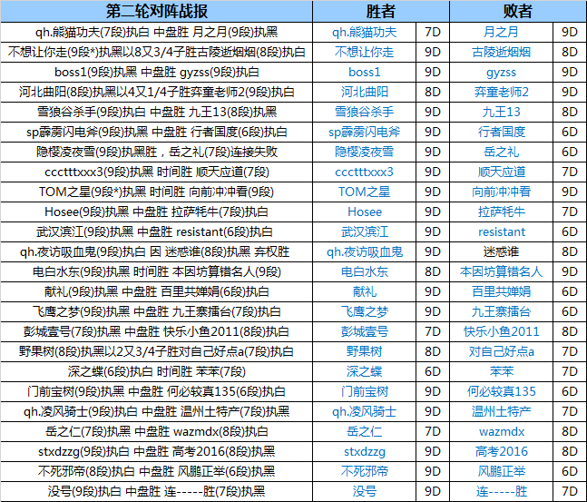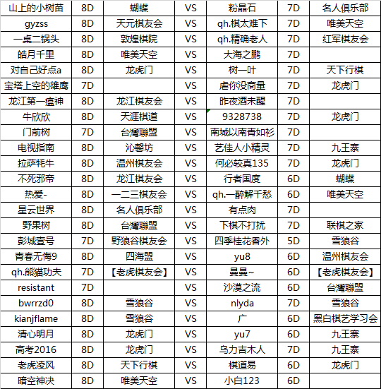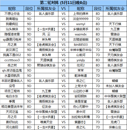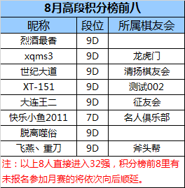 经过7天的报名7号晚9月赛报名已经结束。共有159玩家成功报名,8月棋魂高段对局积分榜前8名的棋手将直接进入32强(积分榜前8位里有未报名参加月赛的将依次向后顺延),有110人将参加11日晚上的第1轮,41人参加13日晚上的第2轮,32强战在9月15日晚8点拉开序幕。又是一番黑白大战值得期待,以下是本月月赛的报名情况和赛程安排。