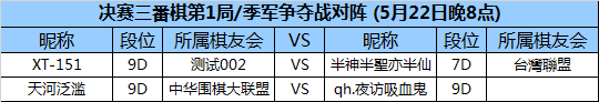 第八轮 9月22日 (周5)20:00 (决赛三番棋首轮及季军争夺)