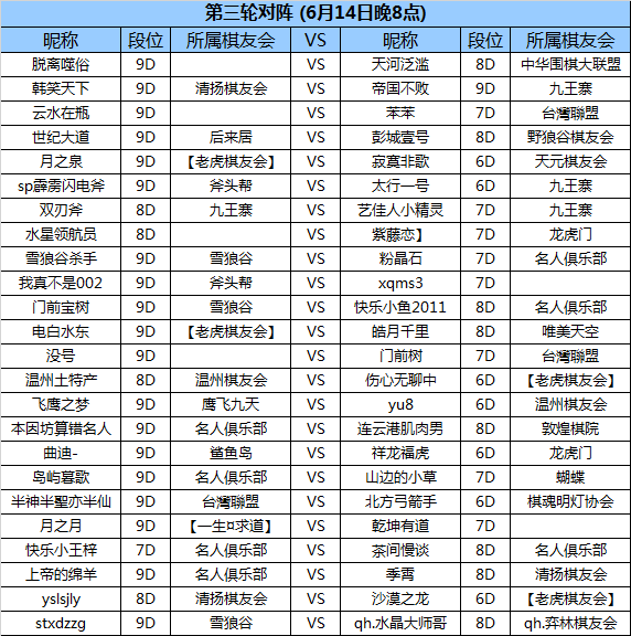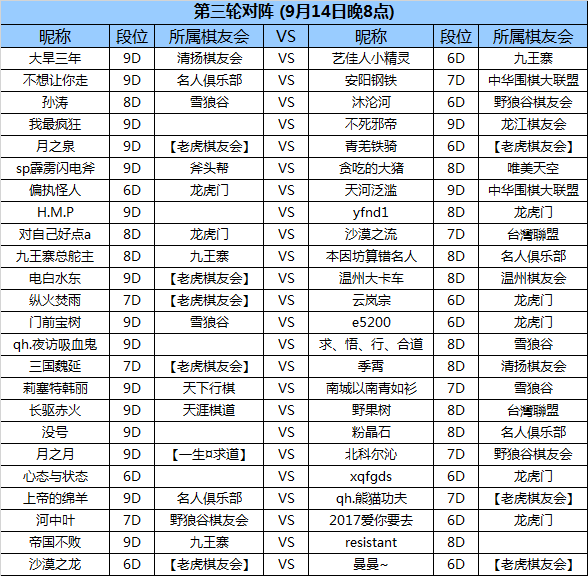 第三轮 9月14日 (周4)20:00 (第三轮)