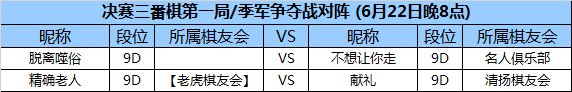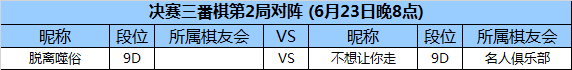 第九轮 9月25日 (周1)20:00 (决赛三番棋次轮)