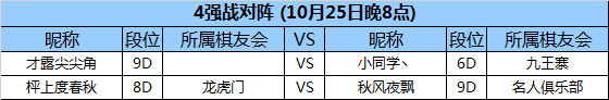 第七轮 10月25日 (周3)20:00 (4强赛)