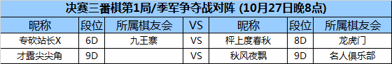 第八轮 10月27日 (周5)20:00 (决赛三番棋首轮及季军争夺)