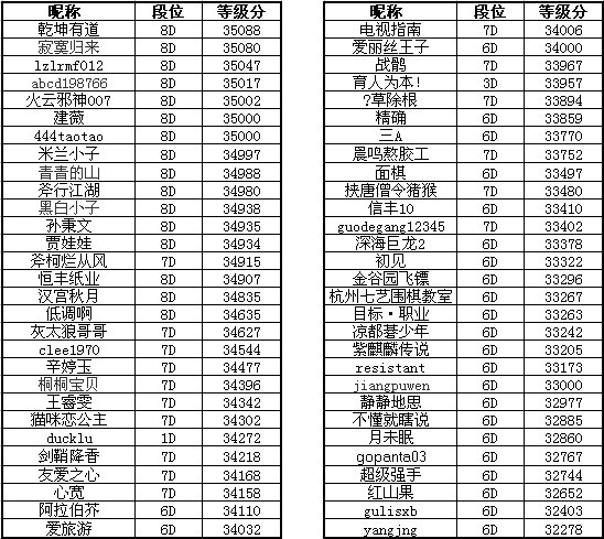 等级分前8