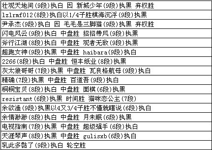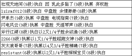 | 尹承杰(9段)执白 中盘胜 resistant(6段)执黑 |