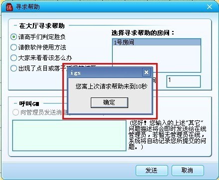 6、 为避免有棋友恶意求助,扰乱棋友的聊天,我们将每次求助系统的间隔时间调整为10秒。