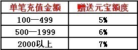 单笔充值元宝达到一定额度后,系统将自动赠送相应比例的元宝。
