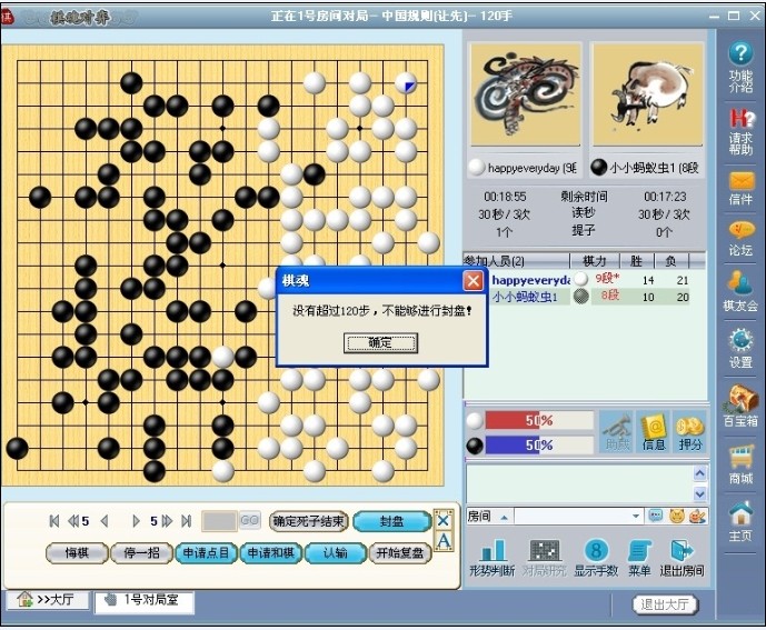 2:只有在下棋超过120手是棋友才能够进行封盘