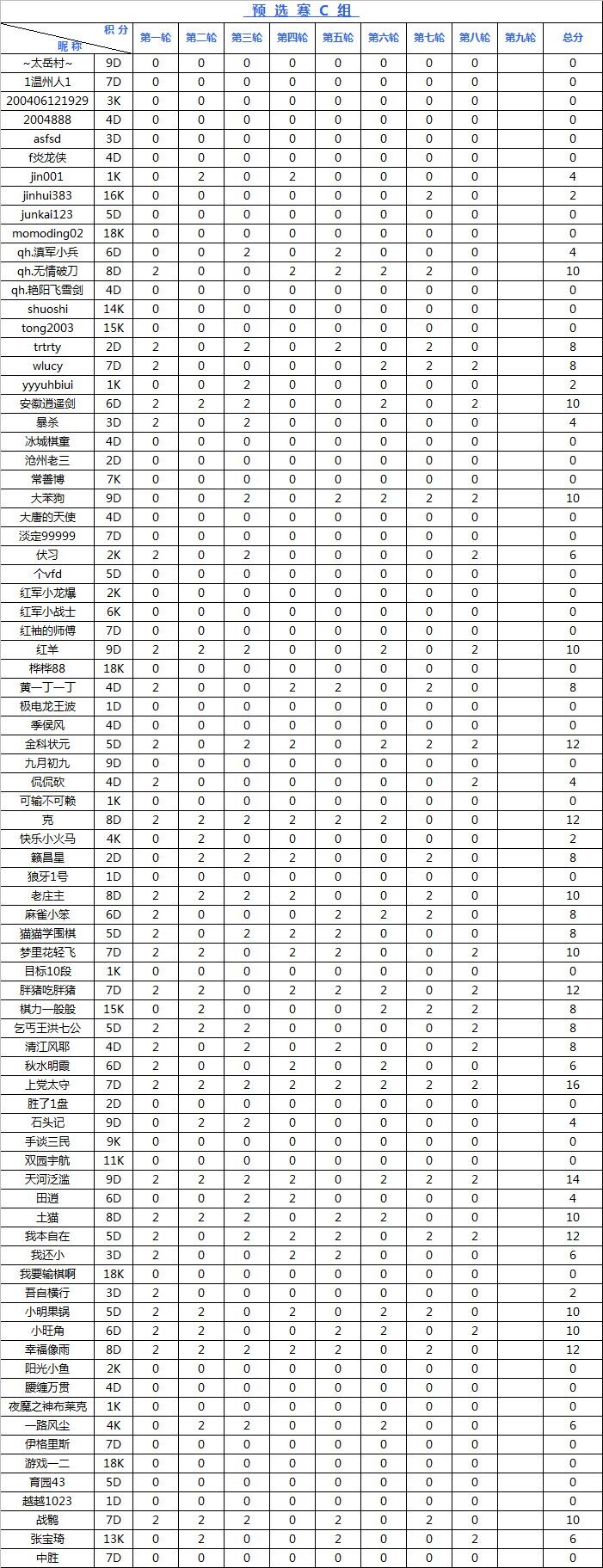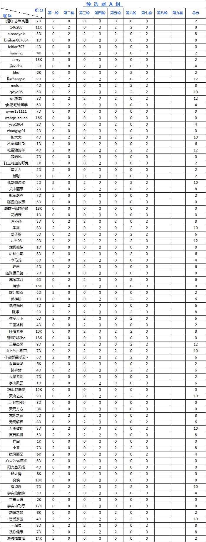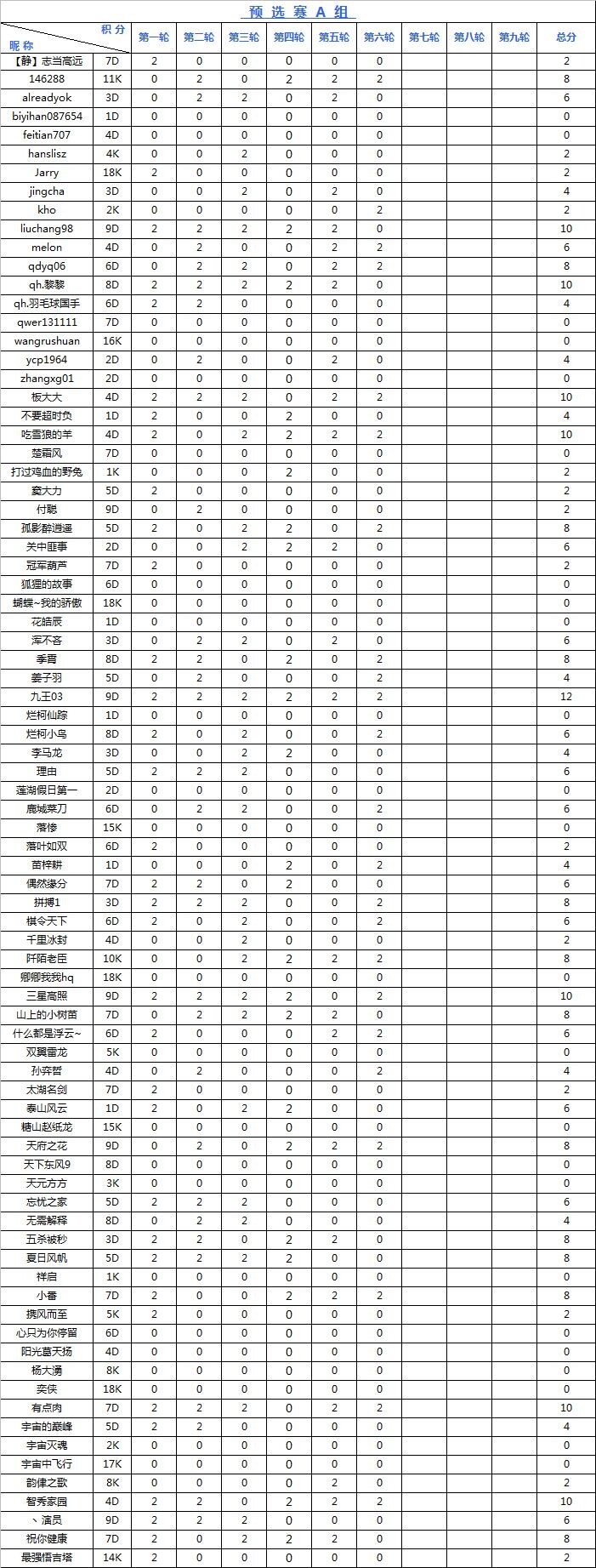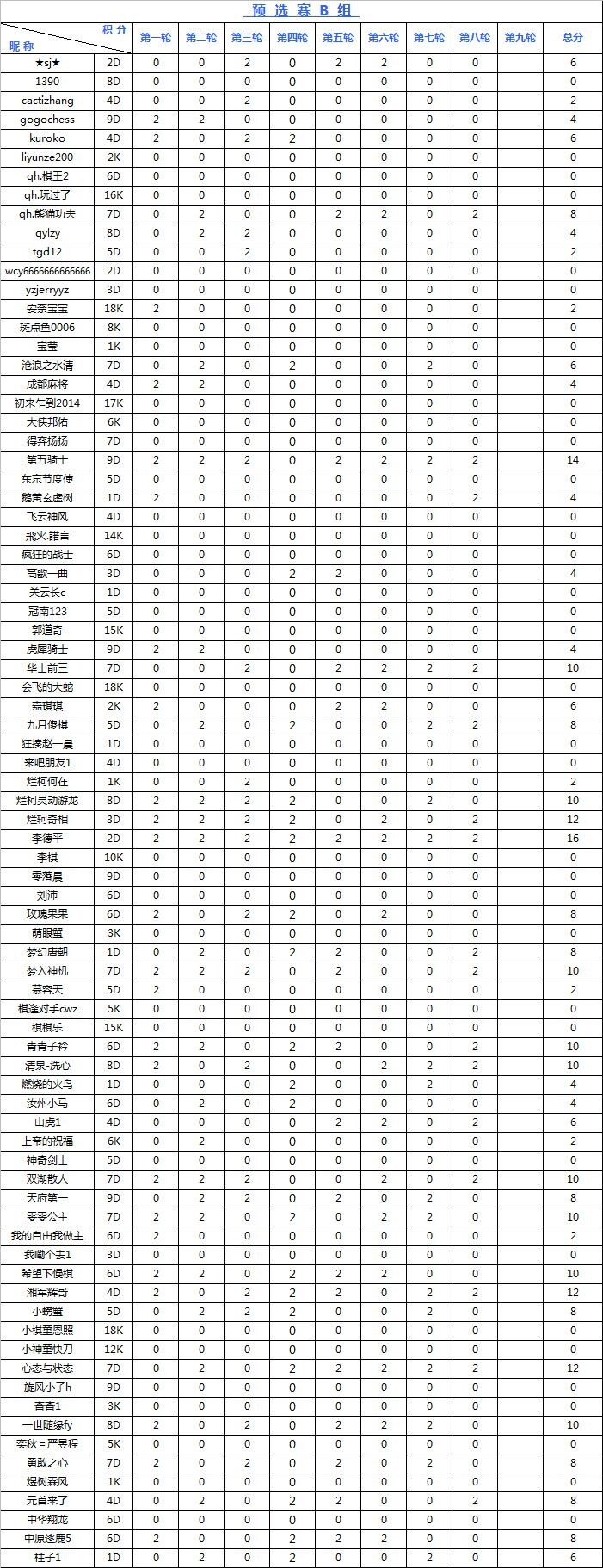 海陵岛杯网络预选赛积分榜