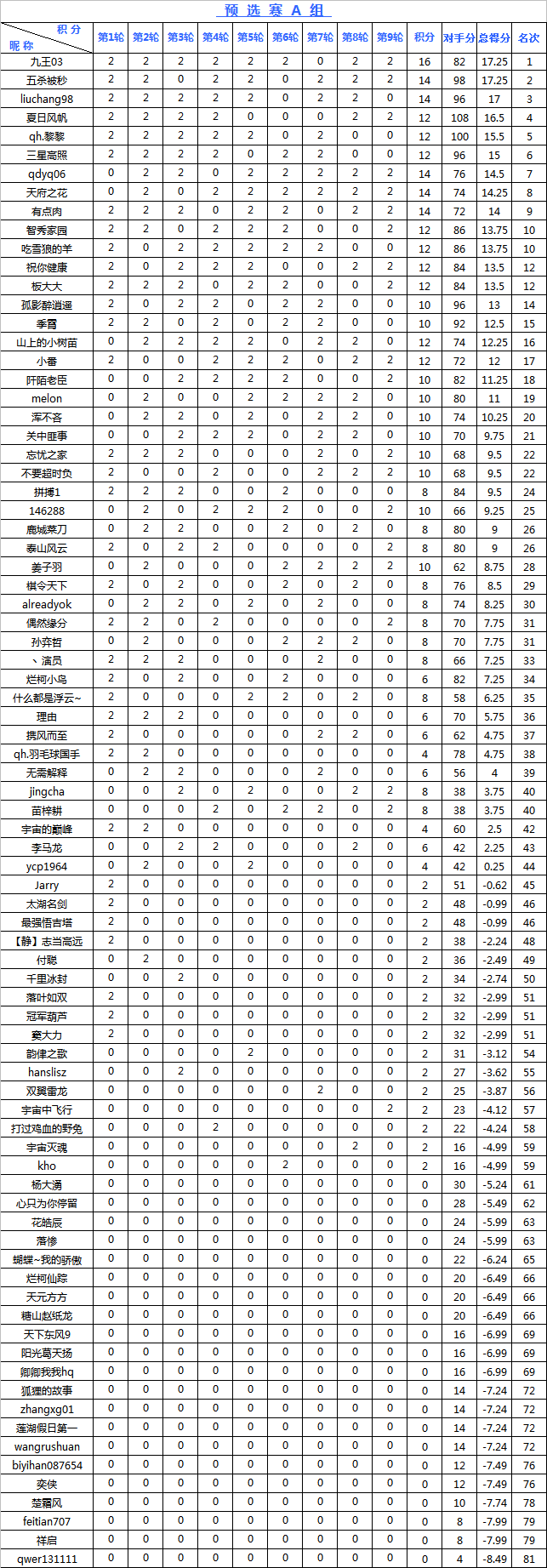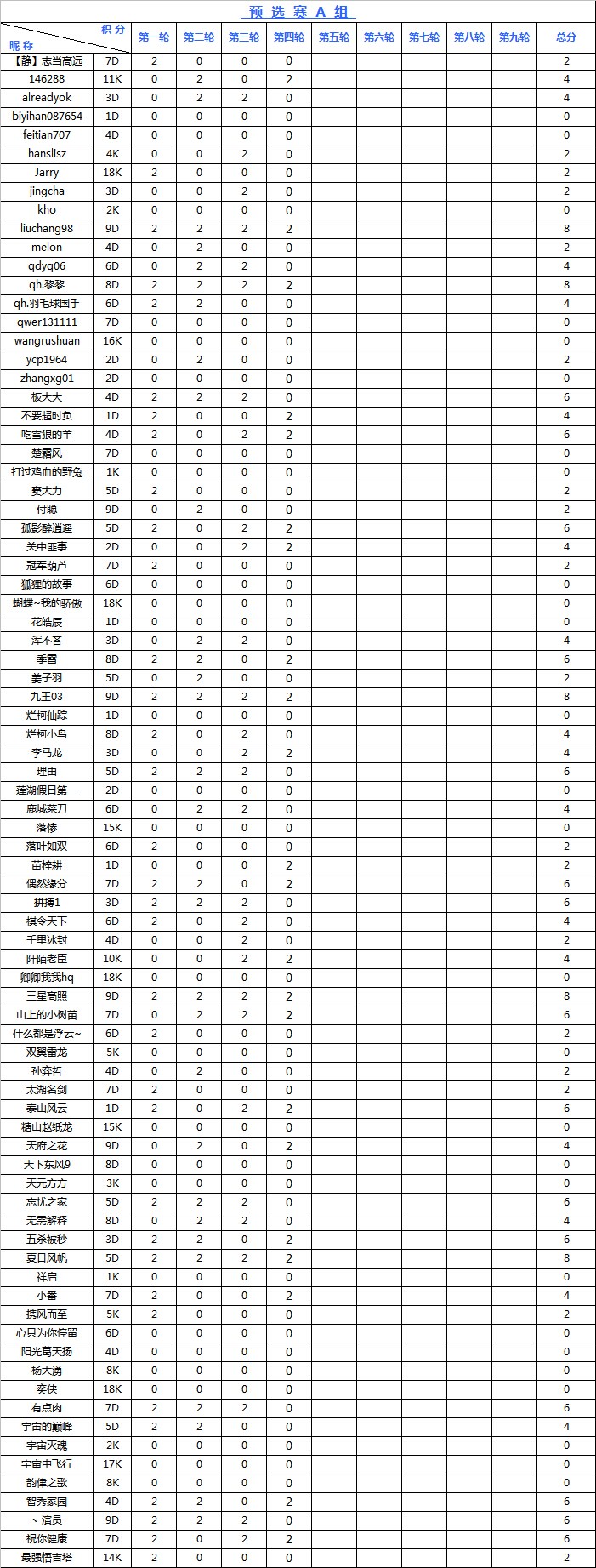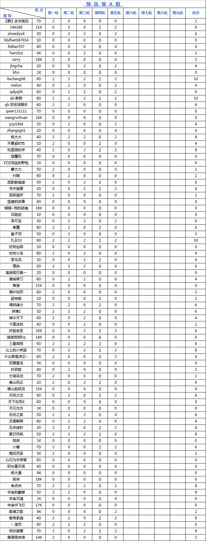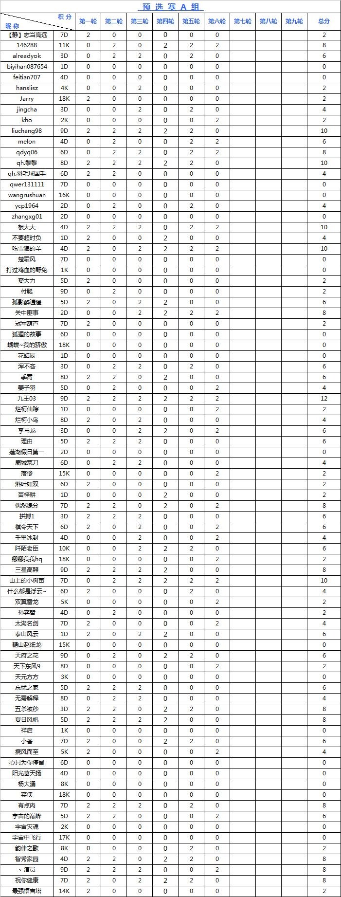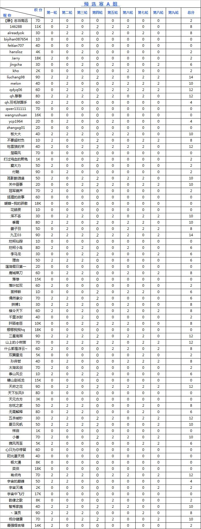 海陵岛杯网络预选赛积分榜