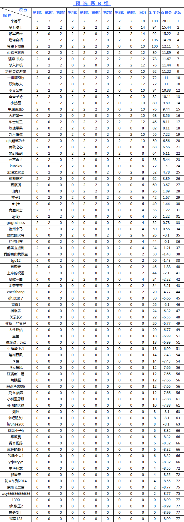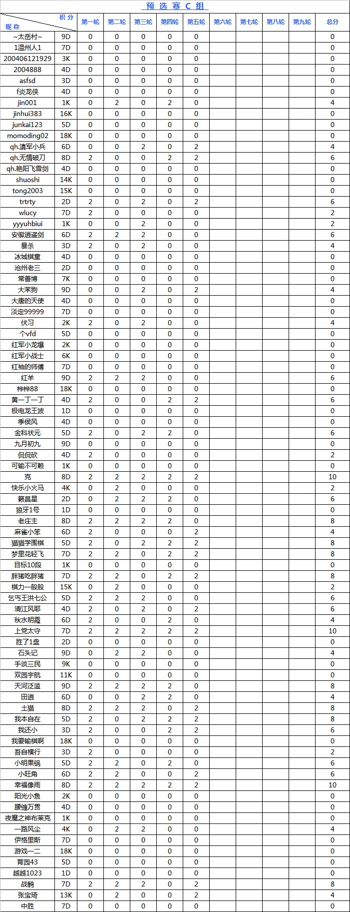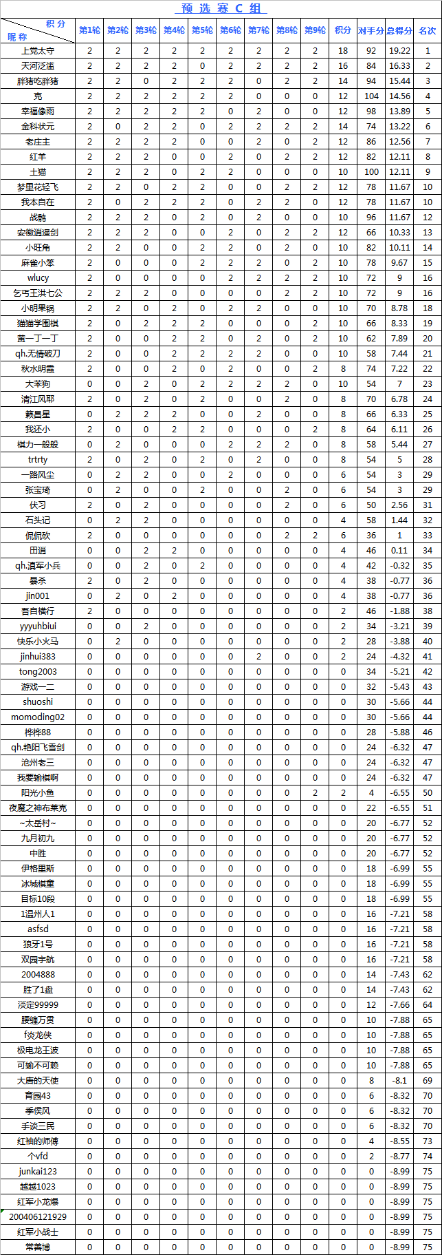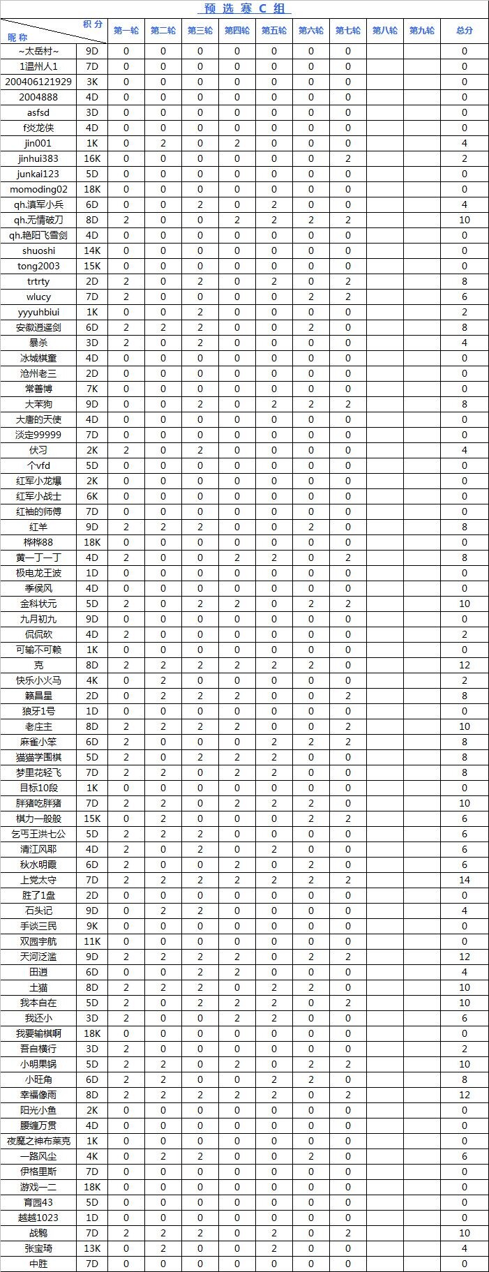 海陵岛杯网络预选赛积分榜