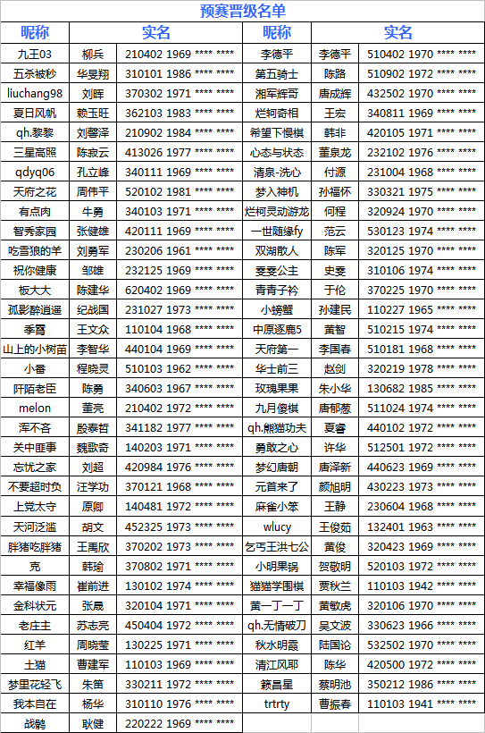 选拔出的选手需向棋魂方面提供身份证信息 以核实个人身份