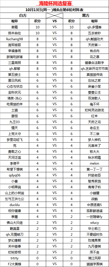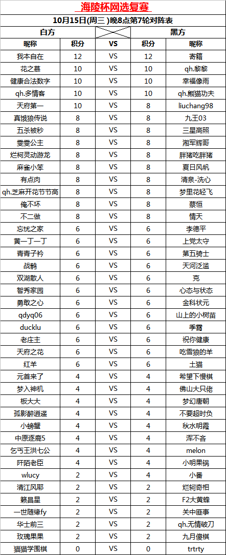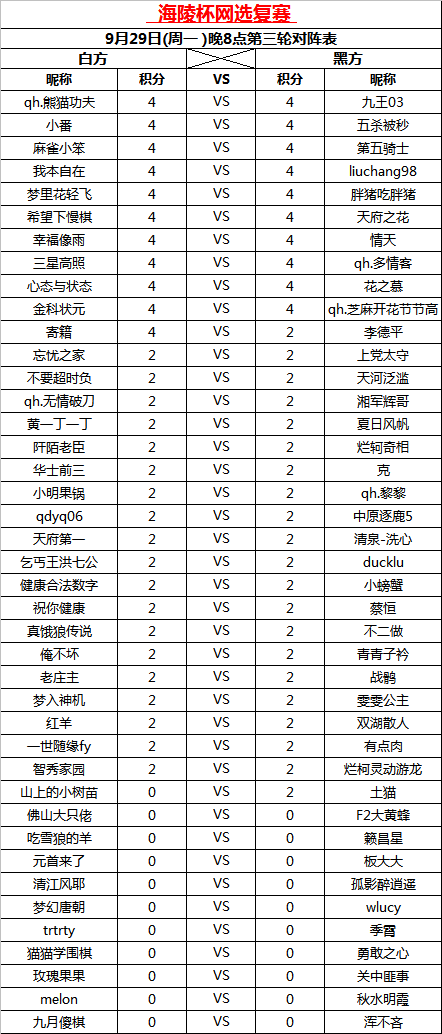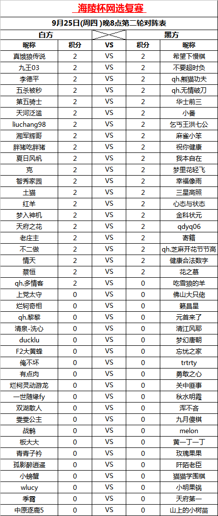 9月15日"海陵岛杯"中国业余围棋32强赛网选初赛顺利结束。根据比赛和身份统计结果,除去弃权和未满28岁的共有晋级人数71人,加上业余6段11人,一共有82人参加复赛。复赛进行9轮积分赛,9轮比赛结束后将选出28名选手晋级最后的总决赛。