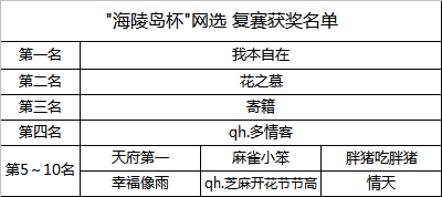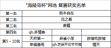 注:前十名的选手要参加了11月的决赛才能获得网选奖金。网选奖金将在到达海陵岛比赛现场后再发放。发放方式为银行转帐请尽快提供相关资料。未尽事宜由主办方单位另行通知。