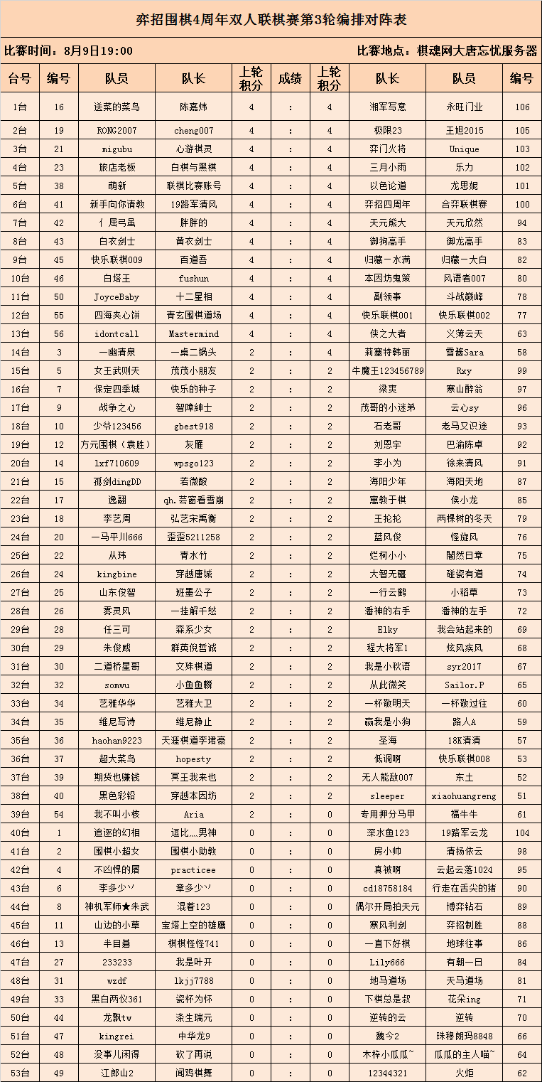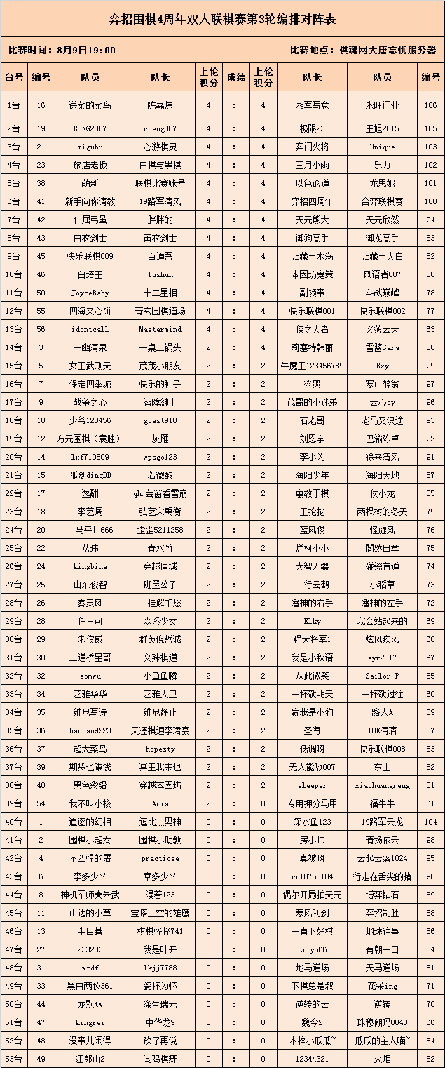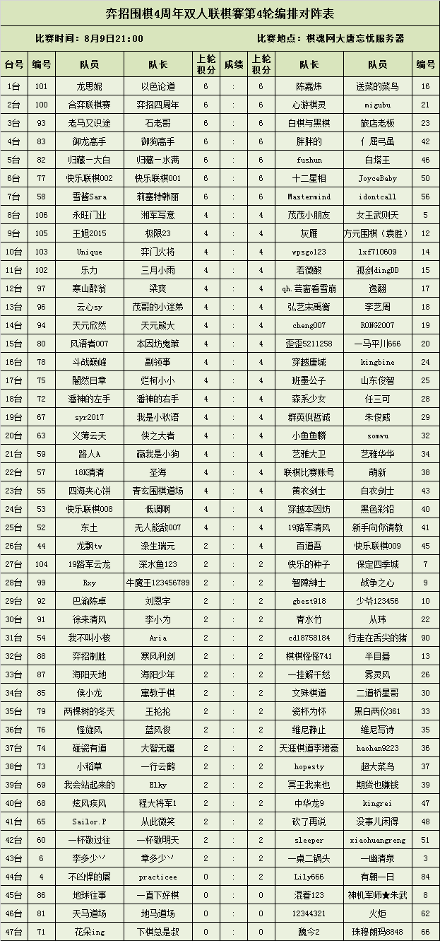 比赛地点:棋魂网大唐忘忧服务器