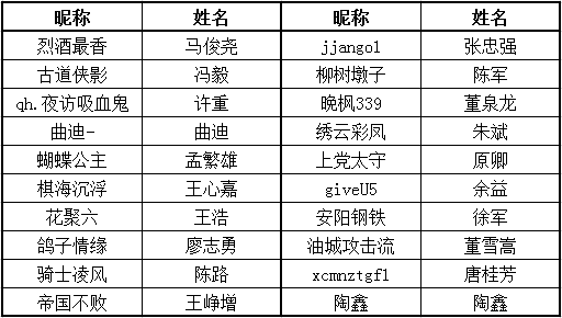 11月29日“重庆两江绿城御园杯”全国三十二强业余围棋赛将在重庆举行,由于有出线选手弃权,我们根据排名依次进行增补,以下为最终网选晋级人员名单: