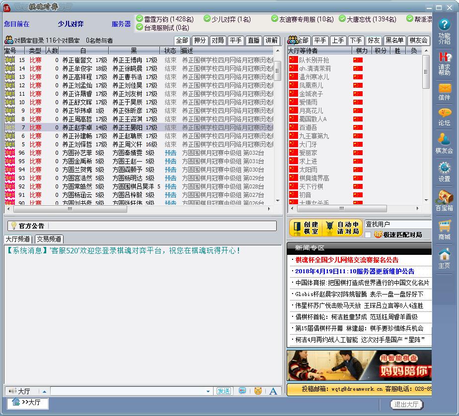 在围棋学习过程中,对弈训练量是必不可少的一个环节,长期以来,保证足够的对弈训练量是围棋教学的一个难点。做为目前唯一的完全免费纯公益少儿对弈平台,棋魂少儿专用服务器目前已基本完成了各项功能的测试完善,拟进行第一期全国少儿围棋机构网上交流赛。